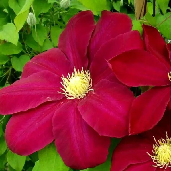 Глядя на этот цветок, в душе, кажется, пылают страсти. Его сочные краски напоминают латино-американские танцы, да и само название говорит о его редкостном виде. Речь о клематисе Hoshi-no-flamenco (Хоши-но-фламенко). Данный сорт был выведен японским селекционером и характеризуется внушительным размером. Так цветки в диаметре превышают 15 см. Их пурпурно-красный цвет разбавлен пушистым центром из ярко-желтых тычинок. Добавлением ко всему стоит отметить бархатную структуру чашелистиков. Цветки простой формы, лепестки овально-эллиптические. К сожалению, цветёт вся это красота лишь раз в майско-июньские месяцы. Тем не менее популярность клематисов Хоши-но-фламенко только растёт. Обильная сочная зелень погружает решетки и балконы в тень. Цепко оплетают лианы клематиса Hoshi-no-flamenco и разного рода беседки, перголы и прочие ограждения. Благодаря небольшому росту, сорт рекомендуют к выращиванию на балконах и лоджиях. Клематис хорошо себя чувствует в контейнерах, так и на открытых почвах. Сочетается с контрастными светлыми растениями, Вы можете подобрать в компаньоны белый невысокий клематису с похожим сроком цветения.