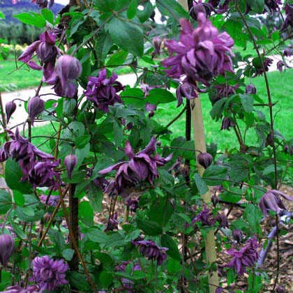 Зеленый купол из листьев и сотни пурпурных цветов, где можно на это посмотреть? В собственном саду! Вам лишь потребуется посадить клематис Мэри Роуз (Mary Rose) . Описание клематиса Мэри Роуз: Это уникальный сорт группы Viticella, который отличается махровыми цветками, похожими на миниатюрные розочки, величиной 3-6 см. Цвет фиолетово-пурпурный с поверхностным серебристым напылением. Сорт цветёт на побегах текущего года, начиная с июня и продолжая цвести до сентября. Куст компактной величины около 2 м, что позволяет ему красиво обвивать арки, беседки и перголы. Этот клематис прекрасно подходит для выращивания в регионах с умеренным климатом и выдерживает понижение температуры до -29°C. Относится к 3 группе обрезки. Применение в саду: Благодаря ретро-стилю, сорт рекомендован для использования в исторических садах. Clematis Mary Rose отлично смотрится на фоне зелени и других многолетников благодаря насыщенному фиолетово-синему цвету. Его можно использовать для вертикального озеленения и комбинировать с декоративными кустарниками светлых оттенков, а также с розами и другими клематисами для создания многослойных композиций. Рекомендации по уходу Перед посадкой необходимо подробно ознакомится с сортом клематиса: предпочитает тенистые или солнечные места. Нельзя забывать, что врагом всех клематисов является ветер, поэтому места надо выбирать мало продуваемые. Нужно обязательно подумать об опорах, по которым будет карабкаться Ваша лиана, они должны быть не менее 1,5 м. Посадка производится в заранее подготовленную яму 50х50, если почвы лёгкие, и 70х70 для более плотных, предварительно удобрив суперфосфатом и перегноем. Расстояние между саженцами также необходимо соблюдать, не менее 70 см между ямками.