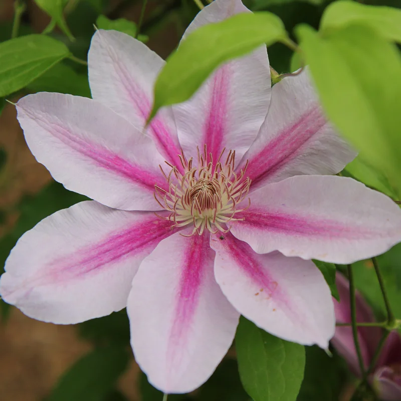 Почему клематис Нелли Мозер (Nelly Moser) , самый узнаваемый среди цветоводов и поклонников чудес природы? Покорил ли их сознание 18-ти см цветок или есть и другие факторы влияющие на его известность более 100 лет подряд? История: клематис Нелли Мозер, непритязательное и неподражаемое творение флоры, вышло на свет в далекие времена. Этот удивительный сорт был выпускником Версаля в 1897 году, где его история началась со скрещивания родителей ”Bélisaire" x "Marcel Moser”. В мире это второй по узнаваемости клематис после Жакмана (Jackmanii). Всё следующее столетие, после своего рождения, клематис Nelly Moser бесчисленно скрещивался гибридистами по всему миру и дал жизнь большому потомству. Кусты обладают замечательной способностью покорять любые высоты, гармонично заполняя пространство сада своей величественной присутствием. В различных источниках высота его имеет значительный разброс от 240 см до 450 см. И это не ошибка, а особенность сорта подстраиваться под опору, климат, освещение и питание. Цветки раскрываются в грациозные плоские чаши порядка 16-18 см в диаметре. Состоят преимущественно из 8 шт чашелистиков, но встречаются и из 7 шт. Облик его представлен в молочном цветке с ярко-окрашенными карминовыми жилками, насыщенность и ширина которых зависит от многих природных факторов. ВАЖНО! Данный клематис необходимо высаживать ТОЛЬКО В ПОЛУТЕНИ. Это связано в с тем, что под обилием солнечных лучей его яркие пятна быстро поблекнут, да и сам цветок станет с примесью серого. Так что если вы не согласны с краткосрочностью декоративности лианы, тогда высаживайте её там, где в дневное время будет хотя бы ажурная тень. Период цветения этого чудесного сорта приходится на май и июнь (а в жарком климате отмечалось цветение даже в апреле), с повторным появлением цветов в августе-сентябре. Клематис Nelly Moser относится к группе обрезки номер 2, что подразумевает обязательное умеренное обрезание после первого цветения, чтобы подтолкнуть вторую волну. Благодаря своей зимостойкости -29℃, она прекрасно переносит холодные климатические условия, радуя владельца каждый год долгожданным расцветом. Рекомендуется выбирать компаньонов, которые раскроют и подчеркнут красоту лианы. Вы можете высадить ее рядом с другими сортами клематисов, например: розовыми и голубыми, чтобы создать превосходное симфоническое сочетание цветов. Также хорошими спутниками для Нелли Мозер могут быть растения с яркими листьями, такие как жимолость, бересклет или пузыреплодник калинолистный, чтобы добавить контрастности и интересных акцентов в садовый ансамбль. Рекомендации по уходу Перед посадкой необходимо подробно ознакомится с сортом клематиса: предпочитает тенистые или солнечные места. Нельзя забывать, что врагом всех клематисов является ветер, поэтому места надо выбирать мало продуваемые. Нужно обязательно подумать об опорах, по которым будет карабкаться Ваша лиана, они должны быть не менее 1,5 м. Посадка производится в заранее подготовленную яму 50х50, если почвы лёгкие, и 70х70 для более плотных, предварительно удобрив суперфосфатом и перегноем. Расстояние между саженцами также необходимо соблюдать, не менее 70 см между ямками.