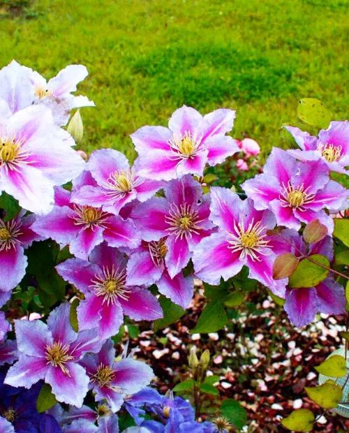 Мир полон вещей, приносящих одно удовольствие! Это может быть вкусная еда или рождественское утро и, даже, цветок. К таким мы смело относим эстонский сорт клематиса Piilu (Пиилу) . Первые бутоны появляются уже в июне, буйство продолжается два месяца, следующий расцвет к сентябрю. Промежуток совсем небольшой, так что складывается впечатление, что клематис Пиилу непрерывно цветущий сорт. Так же присутствует некоторое разнообразие в цветках, на побегах прошлого года цветки образуются полумахровые, а на побегах текущего- одиночные. Окрас их приятен, розово-лиловый мягкий цвет лепестков с разделяющей, практически напополам, тёмно-розовой полосой. Тычинки ярко-жёлтые, органично добавляют цветок. Диаметр цветка до 14 см. Клематис Piilu именно тот сорт, который могут позволить себе все садоводы. Всё дело в размере. Его максимальная длина побегов не превышает 1,5 м. Он может быть буквально комнатным цветком и выращиваться на балконе или лоджии, в красивом горшке летней веранды. Применений этому цветку множество, как и компаньонов, будь это лиственные однотонные растения или Ваши любимцы сада. Зимостойкость высокая – 35 градусов. Ежегодная обрезка 2го типа. Перед посадкой необходимо подробно ознакомится с сортом клематиса: предпочитает тенистые или солнечные места. Нельзя забывать, что врагом всех клематисов является ветер, поэтому места надо выбирать мало продуваемые. Нужно обязательно подумать об опорах, по которым будет карабкаться Ваша лиана, они должны быть не менее 1,5 м. Посадка производится в заранее подготовленную яму 50х50, если почвы лёгкие, и 70х70 для более плотных, предварительно удобрив суперфосфатом и перегноем. Расстояние между саженцами также необходимо соблюдать, не менее 70 см между ямками.
