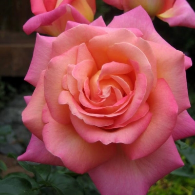 Открытый в США, в Чикаго, этот спорт всемирно известной Peace во всем идентичен ей, за исключением гораздо более яркой окраски – смеси карминовых и кораллово-розовых и золотого. Некоторые предпочитают ее прародительнице. Другие говорят, что розе не хватает деликатности Peace, и то, что цветки выгорают до кремовых с розовым, нравится тоже далеко не всем. О вкусах не спорят! Как и у Peace, листва может страдать от черной пятнистости в жаркое и влажное лето. (URB) Этот спорт от Peace был открыт садоводом в Чикаго. Существует много спортов от Peace, но этот – один из лучших. Как и у его прародителя, у этой розы крупные, 13-15 см бокаловидные цветки, состоящие из около 60 лепестков. Окраска – смесь густо-розового, нежно-розового и абрикосового. С желтым у основания лепестков. Кусты достигают 120-150 см высотой. Листва кожистая, темно-зеленая, блестящая, подвержена черной пятнистости. Сорт очень зимостоек. (http://www.herbs2000.com)