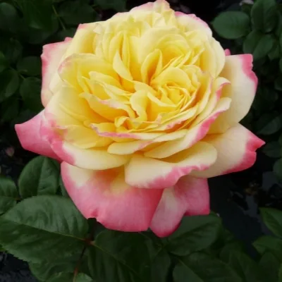 Сорт создан к 125-летию фирмы Кордес. Густо-махровые цветки, с плотно набитой серединкой - желтые с ярко-розовыми или красными крайними лепестками. Цвет желтый с красными краями. Интенсивный аромат с нотками ванили, гелиотропа и жасмина. Куст высокий, прямостоячий, с крепкими побегами. Сорт Кордес Юбилей относится к группе чайно-гибридных роз. Сногсшибательной красотой обладает цветок розы этого сорта. В течение своего существования он меняет свой цвет с желтого до ярко-розового. Сначала, когда бутон только начинает разворачиваться, лепестки желтые, и лишь самые крайние из них имеют ярко-розовую окраску. Чем больше дней цветку, тем больше розовый цвет захватывает каждый лепесток. А желтый и оранжевый цвета отступают к центру. Эффект таков, словно цветок светится изнутри. Фотографии довольно точно передают цвет розы сорта Кордес Юбилей. Цветки крупные, достигают 12 см в диаметре. Сам цветок – супермахровый, в его составе до 50-60 лепестков. Полностью распустившись, он приобретает форму блюдца.