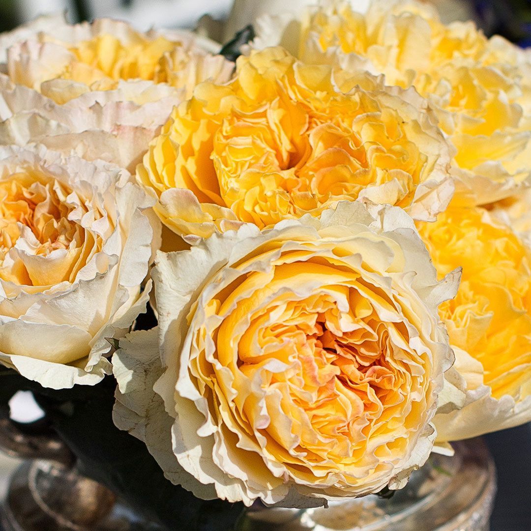 Первый жёлтый срезочный сорт Д. Остина с богатой окраской и восхитительным ароматом, на сильных, вертикально растущих побегах. Крупные (10 см) цветы при роспуске похожи на "взъерошенные" чашки, раскрываются в классические розетки со множеством идущих из центра лепестков, расположенных в свободном вихре. Окраска изменчивая: иногда это чистый, ясный жёлтый цвет, со светлыми наружными лепестками, при похолодании цветок становится на два тона темнее, центр - почти абрикосовым, внешние лепестки - светло-желтыми. Аромат сильный, с нотами мёда, сирени и миндаля. В срезке стоит 8-10 дней. Сорт устойчив к МР, устойчивость к ЧП.