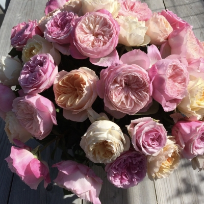 Срезочный сорт. Чашевидные в начале роспуска цветки раскрываются в густомахровые розетки розового цвета с красно-фиолетовыми оттенками и обладают сильным фруктовым ароматом. Продолжительность жизни цветка около 10 дней. Цветение в течение сезона. Сорт устойчив к МР. Лепестки окрашены в нежный розовый цвет с фиолетово-красным отливом. В качестве основного цвета отмечен розовый. Насыщенность – бледная. Чаще всего крайние лепестки более яркие по сравнению с центральными. Закрытый бутон напоминает чашу, а после роспуска он становится розеткообразным. Размеры – крупные (диаметр варьируется от 9 до 12 сантиметров). Отличительная черта сорта Констанс заключается в пышных густомахровых цветках, каждый из которых насчитывает по 140 лепестков. Расположены они преимущественно поодиночке, но иногда бутоны собраны в небольшие соцветия. На каждом стебле может вырастать как по одному цветку, так и группа из 3-5 штук. Аромат очень сильный (аппетитный запах фруктов с выразительными нотками сладкой груши и яблока). После срезки розы остаются свежими и привлекательными на протяжении 8 суток. В высоту кусты вырастают до 90-100 сантиметров. Ширина – около 75 сантиметров. Густота растительной массы – средняя. Цвет листвы – темно-зеленый с глянцевым блеском на поверхности.