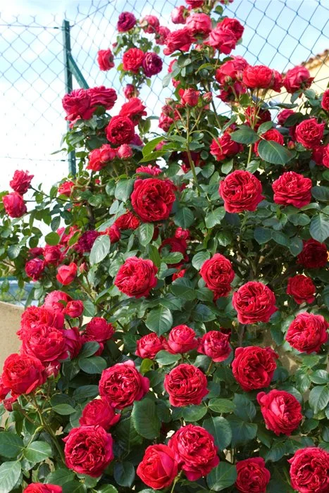 Из-за обильного цветения мускусные плетистые сорта роз являются любимцами у садоводов. Их непрерывное цветение радует своей красотой, притягивает взгляд, кружит голову ароматом. Этот сорт плетистой розы по официальной версии был выведен в 2002 году французом Аланом Майером. Куст розы сорта Эрик Таберли растёт до 1,6 м высотой и не более 0,7 м шириной. Кусты являются компактными и красивыми. Стебли жёсткие и толстые, при этом их поверхность густо усеяна шипами. По данной причине уход за цветком является трудоёмким занятием. Для этого сорта роз характерно наличие плотной листвы изумрудного цвета. Цветёт Эрик Таберли крупными (до 10 см в распущенном виде) густомахровыми розами темно-красного и малинового цвета. Цветы обладают средним по насыщенности ароматом в дневной период и почти не пахнут вечером. К преимуществам этого сорта относятся повторное цветение с обилием бутонов, нежный аромат, красивый вид, сильная жаростойкость. Особенности цветения Особенность этого сорта в том, что он цветет чрезвычайно красивыми розочками. Яркие малиновые бутоны имеют яйцевидную форму, из-за которой розу часто называют английской. В крупном цветке можно насчитать более 100-110 лепестков. Специалисты рекомендуют при выращивании этого сорта препятствовать цветению, пока куст не достигнет годовалого возраста. При соблюдении этого условия он не задержится в цветении. Описываемая роза является повторноцветущей. Цветет она с начала лета и до осени, причем весьма обильно.