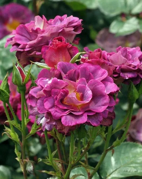 Blauwestad – удивительная флорибунда, которая может быть «изюминкой сада», благодаря оригинальному лилово пурпурному с более светлым реверсом цвету в сочетании с длинными золотыми «ресничками » тычинок в центре каждого цветка. Бутон фиолетово - розовый, бокаловидный. Цветок от лилово пурпурного до фиолетово-розового с сиреневым оттенком, со светлой обратной стороной лепестков. Цвет в зависимости от погоды может меняться и роза бывает совершенно разной. Цветок полумахровый, 15 - 17 лепестков в одном цветке, диаметр цветка 6 - 7 см, обладает насыщенным устойчивым ароматом от среднего до сильного. Цветки собраны в пышные соцветия, цветение обильное, повторное, на одном цветоносе в период массового цветения насчитывается 10 – 15 цветков одновременно. Кусты густые, высотой 60-70 см, шириной 50 см, прямостоячие. Лист темно-зеленый, крупный, глянцевый, плотный. Устойчивость: к заболеваниям высокая, морозостойкий сорт.