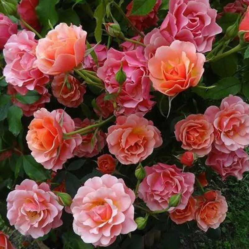Флорибунда, 27 лепестков, высота 80-90 см. Цвет меняется от розового до абрикосового, слегка выгорает на солнце до светло розового. Цветки полумахровые, чашевидные или плоские, с волнистыми лепестками Кусты мощные, крепкие, но маленькие. В высоту кусты достигают 80-90 сантиметров, а в ширину – 60 сантиметров. Листья зеленые, с глянцевой поверхностью. необычная форма цветков; очаровательный окрас; стойкость к заморозкам; раннее и длительное цветение.