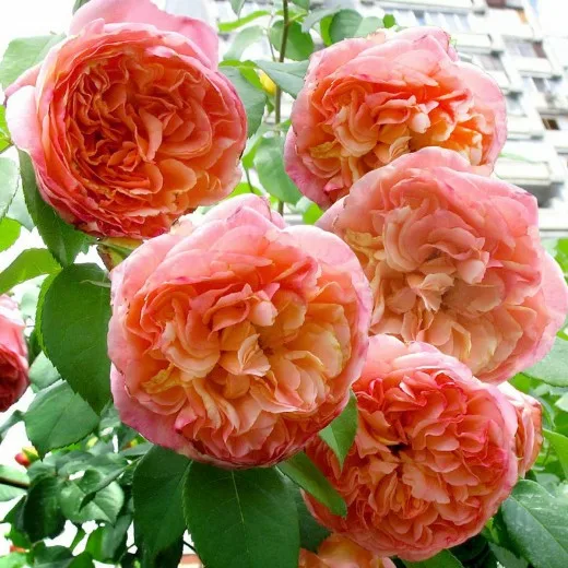 Papi Delbard, произведение искусства великого мастера назван в честь самого Жоржа Дельбара. У этой розы очень крупные (12-13 см) цветки в старинном стиле, настолько густомахровые, что слегка поникают (это достоинство, так как в них можно заглянуть снизу). Появляются по одному или в небольших кистях на длинных побегах. Цветки абрикосовые с более темным основанием и кремовой оборотной стороной лепестков. Эта великолепная комбинация цветков дополняется насыщенным фруктовым ароматом. Куст устойчив к заболеваниям, достигает 3-4 м. (CRW)