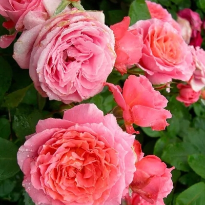 Удивительно красивая роза сразу привлекает к себе внимание. Ее неброская, но изысканная окраска, перелив лососевых и утонченных розовых тонов, обилие бутонов, практически полностью покрывающих куст, делает розу явным акцентом в саду. Кусты обладают энергичной манерой роста, стройные, но при этом густые, а небольшая склонность к ниспадению верхней части побегов делает их на вид более приземистыми, чем это есть на самом деле. Средняя высота от 0,8 до 1 метра и выше при идеальных агротехнических условиях. Диаметр куста около 60 см. Прочные гибкие побеги покрыты темно-зелеными листьями кожистого типа. Круглые бутоны окрашены в розовую гамму. Крупные (8-9 см в диаметре) округлые цветки в полураскрытии имеют розовый окрас различной степени интенсивности, в полном раскрытии становятся видны центральные лепестки, окрашенные в лососевые оттенки. Интенсивность окраса слабеет ближе к внешнему краю лепестков и приобретает сливочно-розовые оттенки. Махровые бутоны состоят из 20-50 шелковисто-атласных лепестков классической формы. Цветки собраны в букетовидные соцветия, состоящие из 1-3 бутонов, нарастающих непрерывно длительное время. Количество бутонов настолько большое, что зеленой массы почти незаметно под лососево-розовой шапкой ароматных цветков. Непрерывное цветение делает почти незаметным отцветание одних бутонов, поскольку их сразу же заменяют другие. Роза обладает классическим тонким ароматом.