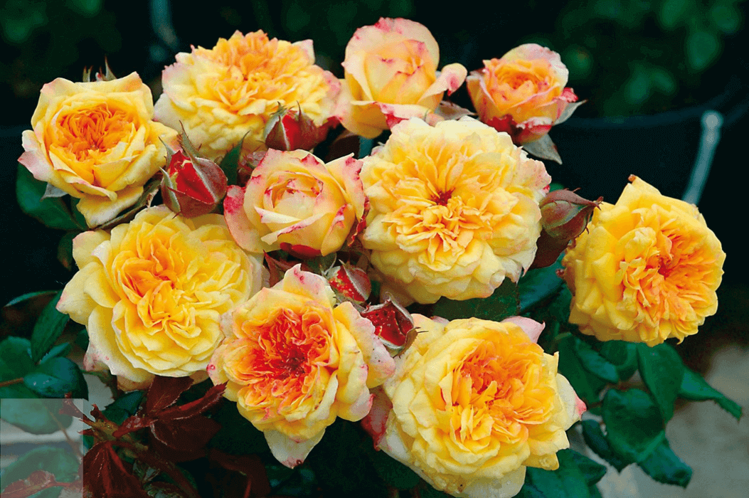 Это удивительное творение известного мастера, представляющее собой флорибунду, шраб или кустовую розу. Этот куст высотой от 80 до 100 см украшает сад своей раскидистой ветвистой кроной и декоративной ярко-зеленой листвой. Преимущества этого сорта очевидны: крупные махровые цветки с богатой палитрой желто-оранжевых и розовых оттенков, интенсивный аромат ванили и цитрусов, а также способность к повторному цветению. Однако растение требует внимательного ухода и защиты от дождя и ожогов на лепестках при выращивании в солнечных местах. Цветение розы Жорж Данжан поражает своим великолепием. Цветки, достигающие диаметра 11-12 см, имеют квартированную форму и более 80-100 махровых лепестков. Эффектный желто-оранжевый цвет с розовым краем постепенно изменяется по мере распускания, создавая завораживающее зрелище.