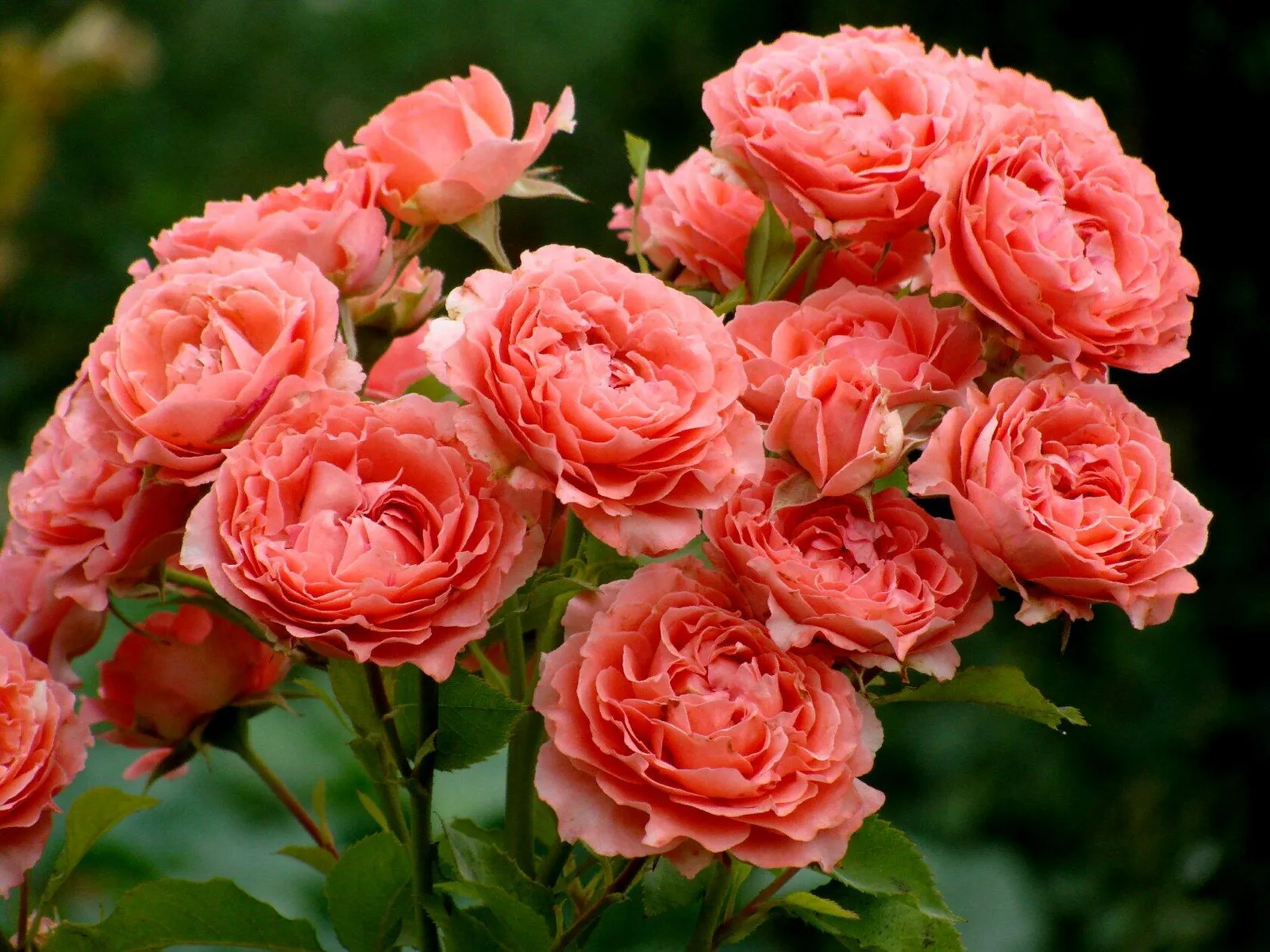 Сoral gelee(Дзунко Кавамото) - нежная роза кораллово-розового цвета, с сильным ароматом. Цветение обильное, размер цветка 8-10 см. Роза обладает хорошей устойчивостью к болезням. Коралл Желе в цвету вызывает восторг у всех, кто ее видел, и полностью оправдывает свое название. Форма крупных (8-10 см) махровых (26-40 лепестков) цветков является чашевидной. Цветочек обладает интенсивно-розовым окрасом, и при этом селекционерам удалось добиться визуального эффекта полупрозрачности, воздушности и невесомости. Собранные в букетовидные соцветия бутоны действительно напоминают желе в розовой чаше, издают приятный аромат личи, достаточно интенсивный, чтобы наполнить сад благоуханием. Сильнорослые прямостоячие кусты высотой 150 см обладают множеством прочных, но гибких побегов, не склонных к разваливанию. Сорт хорошо держит форму и поддается формированию. Темно-зеленая листва кожистого типа также заметно отличается по строению от классических представителей семейства. Глянцевая пластина имеет овально-заостренную форму, но она более вытянутая, чем обычно, а ее мелко зазубренные края отличаются сильной волнистостью. Общее впечатление о цветущей красавице — элегантная, изысканная и строптивая.