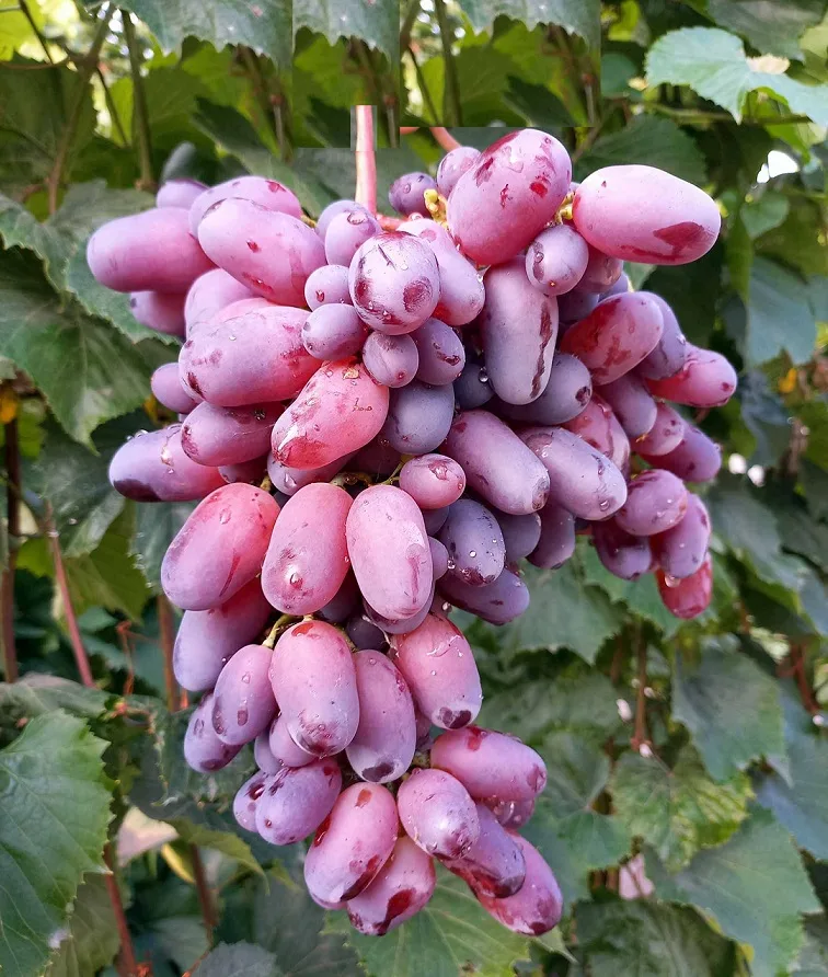 Виноград «Байконур» — высокоурожайный столовый сорт раннего срока созревания (105–115 дней, начало августа) селекции Е.Г. Павловского. Отличается крупными (12–18 г) темно-фиолетовыми ягодами удлиненно-сосковидной формы, плотной мякотью и гармоничным вкусом. Грозди конические, весом 400–1000 г. Сорт устойчив к растрескиванию, осам, болезням (2,5-3 балла) и морозам до -23...-24°C. Основные характеристики сорта Внешний вид и вкус: Ягоды очень крупные, удлиненные (до 4-5 см), темно-красного или фиолетового цвета с плотной кожицей. Вкус гармоничный, иногда с фруктовыми нотками, мякоть хрустящая. Урожайность: Высокая, требует обязательной нормировки гроздями. Кусты: Сильнорослые, с хорошим вызреванием лозы. Цветок обоеполый (не требует стороннего опыления). Устойчивость: Обладает повышенной устойчивостью к болезням (милдью, оидиум, серая гниль) — 2,5–3 балла. Транспортабельность: Отличная, грозди долго сохраняются на кустах без потери вкуса. Преимущества и недостатки: Плюсы: Крупноплодность, раннее созревание, не поражается осами, ягоды не трескаются. Минусы: Наличие 2-3 косточек в ягоде, требует нормировки урожая. Сорт подходит для выращивания в южных регионах, а также в средней полосе с укрытием на зиму.